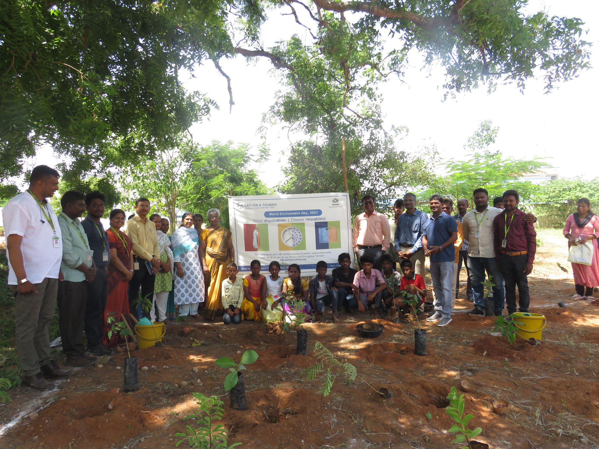 With the slogan "Ditch Disposables... Choose Reusables" and the focus on "Solutions for Plastic Pollution," COODU and Larsen & Toubro's CSR programme celebrated "World Environment Day - 2023." Children, teachers, and volunteers from L & T and COODU took part in a plantation drive that was organised at the Government Higher Secondary School in Chettipalayam.
